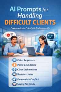 AI Prompts for Handling Difficult Clients are carefully written instructions you give to an AI tool to help you respond professionally to challenging client situations. They help you stay calm, clear, and respectful while protecting your boundaries.